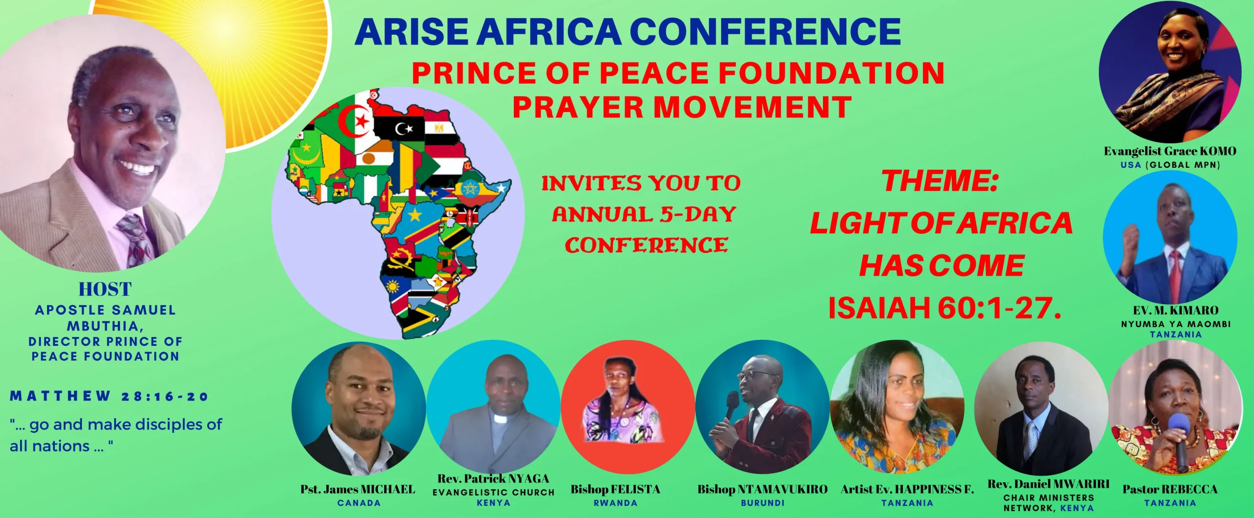 Hosted by Apostle Samuel Mbuthia, Director Prince of Peace Foundation, among the speakers will be: